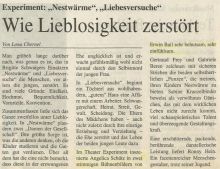 Verschmitzt bösartig ..Von hintergründigem Humor bis zu chonungslosem Realismus reicht Schwaigers Spektrum, das Regisseurin Angelica Schütz in ihrer Inszenierung im Experiment am Lichtenwerd gekonnt ausarbeitet… |
